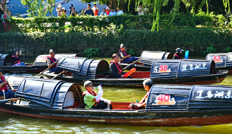 此次乌篷船马拉松赛也正式拉开2025东湖乌篷船风情月活动序幕,东湖景区将围绕“醉美秋光”主题,结合国庆中秋双节元素,深入挖掘景区非遗项目,推出“古窑新生 香飘东湖”“乌篷船上的下午茶”“东湖陶·集市”“陶园清风——陶成章清廉主题展”“水乡社戏——流动的舞台”等内容丰富、形式多样的特色文化活动。